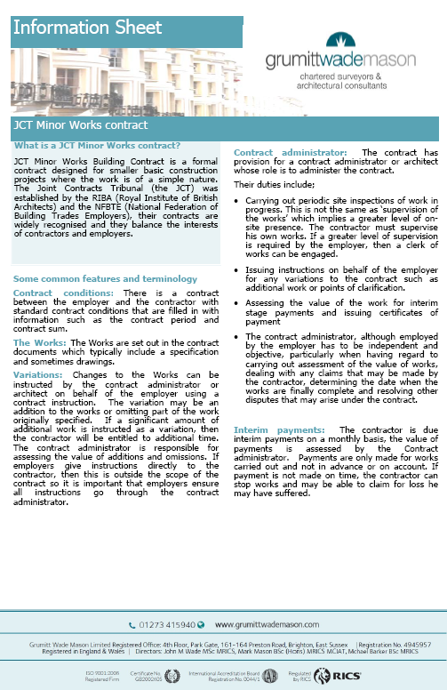 To find out what you need to know, download our Information Sheet GWM – JCT Minor Works
